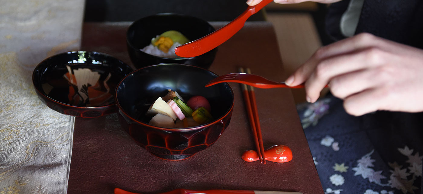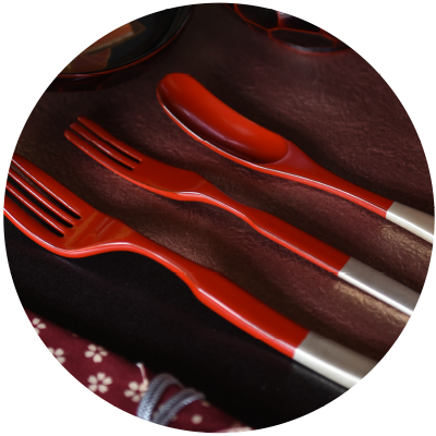 食べやすい「木と漆」のカトラリーの形を考えました。