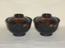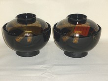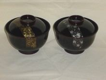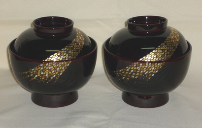 夫婦吸物椀 溜塗 帯春秋沈金